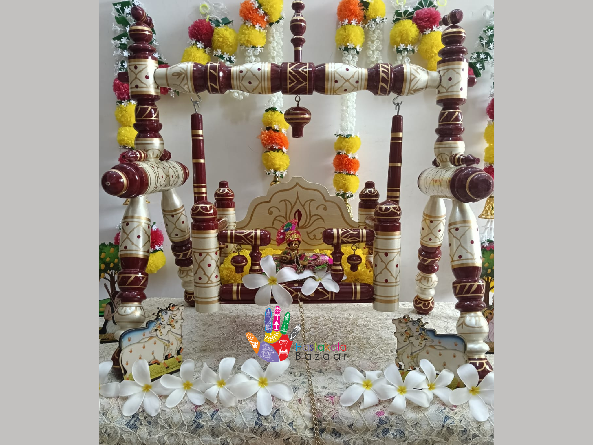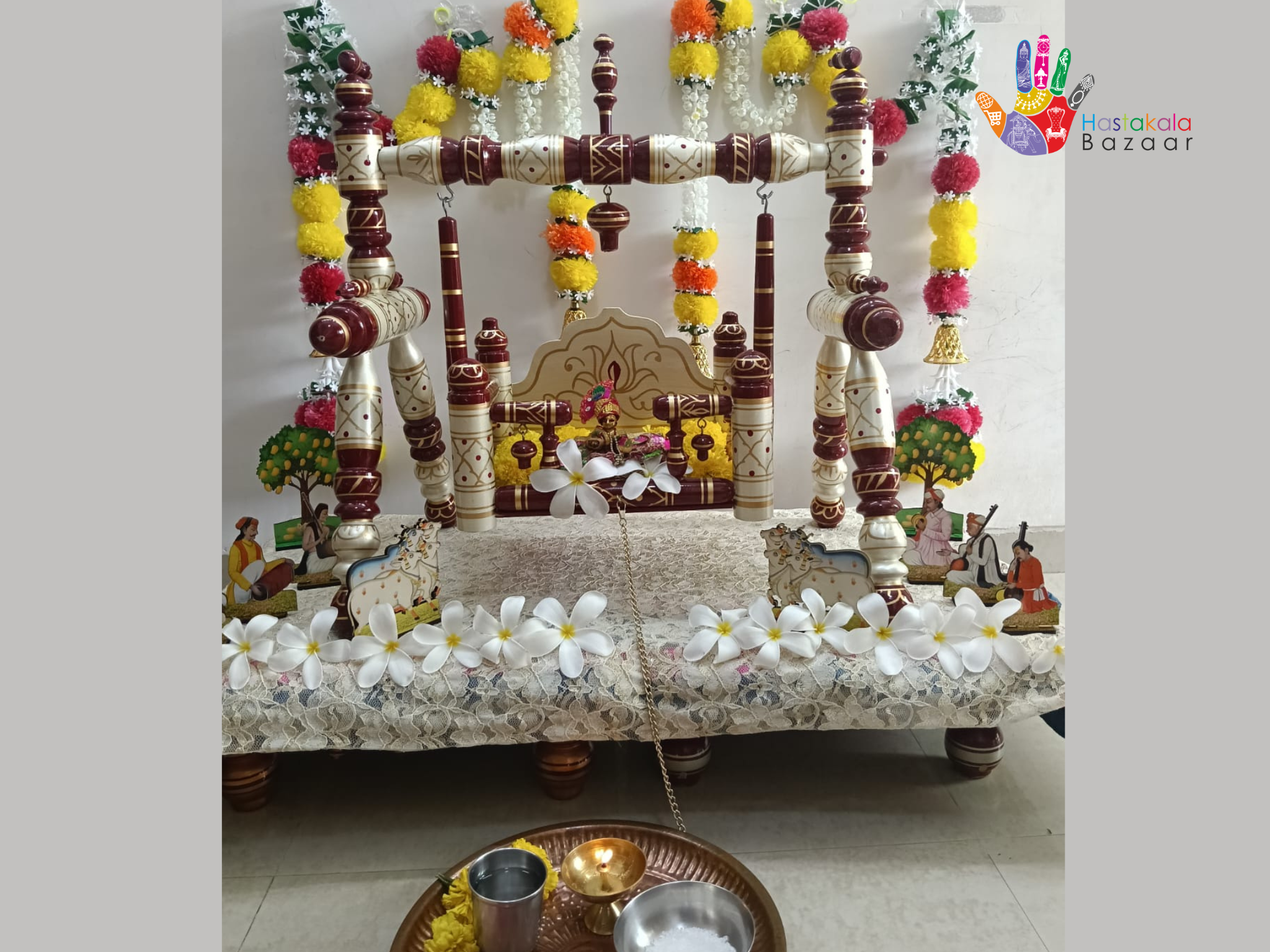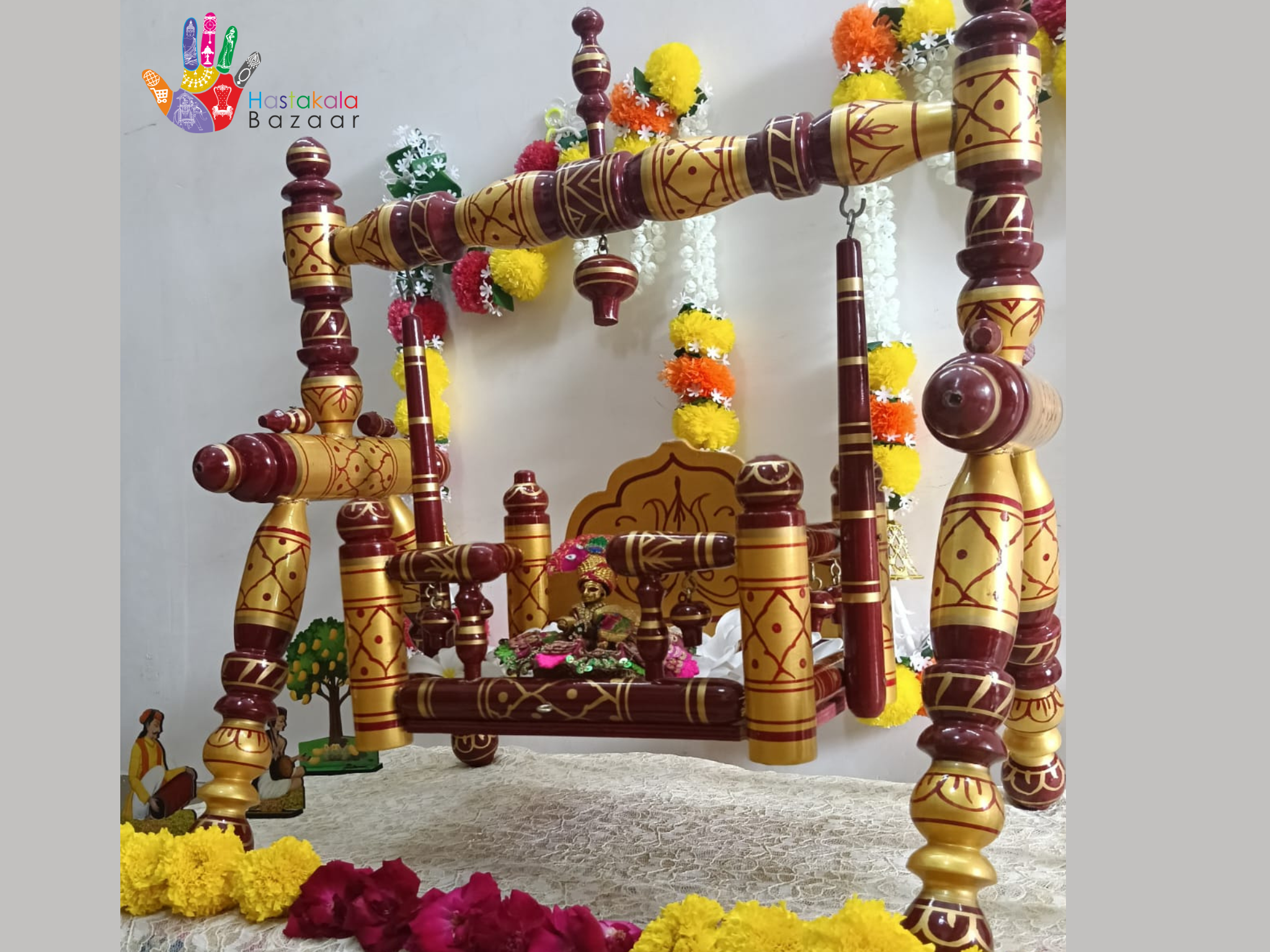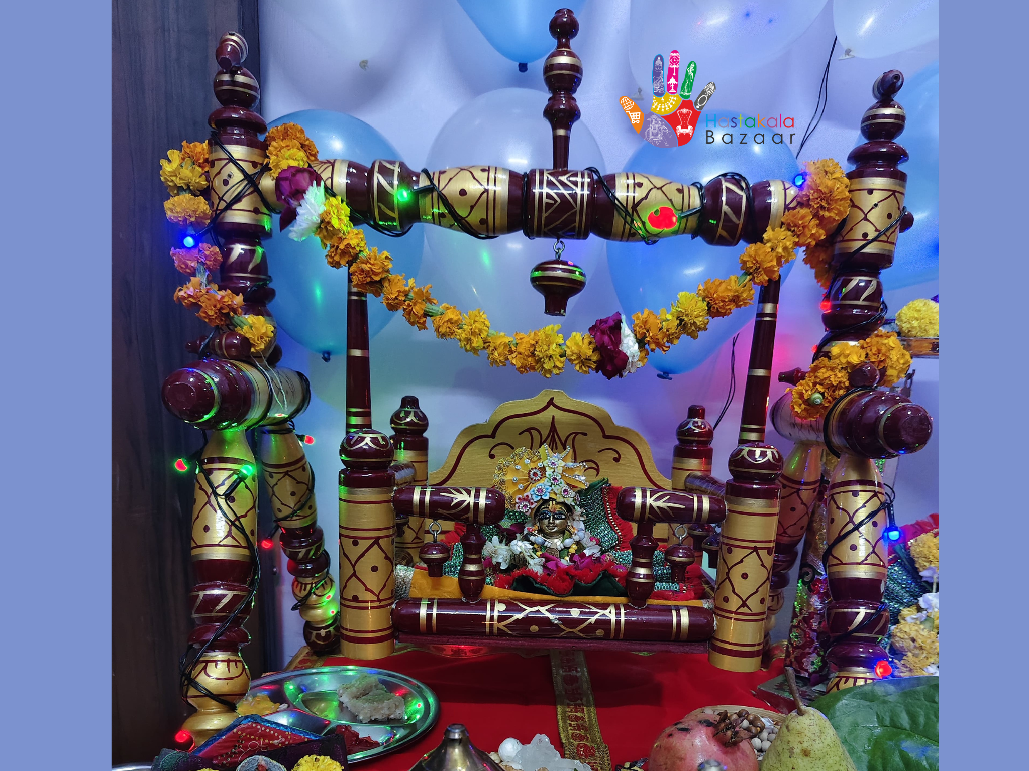 "I'm absolutely delighted with the Teak Wood Laddu Gopal Jhula I received from Hastakala Bazaar! The craftsmanship is exceptional, and the quality of the teak wood is superb. My Laddu Gopal looks adorable in it! The Jhula is sturdy, and the design is beautiful. I'm so happy with my purchase!